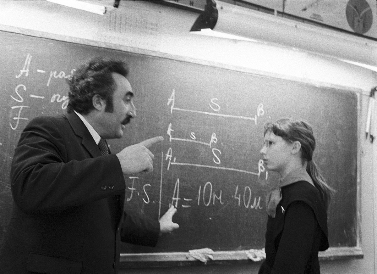 Ученики московской школы № 524 на уроке математики, который ведет директор учреждения Иосиф Борухов - Александр Чепрунов/Sputnik