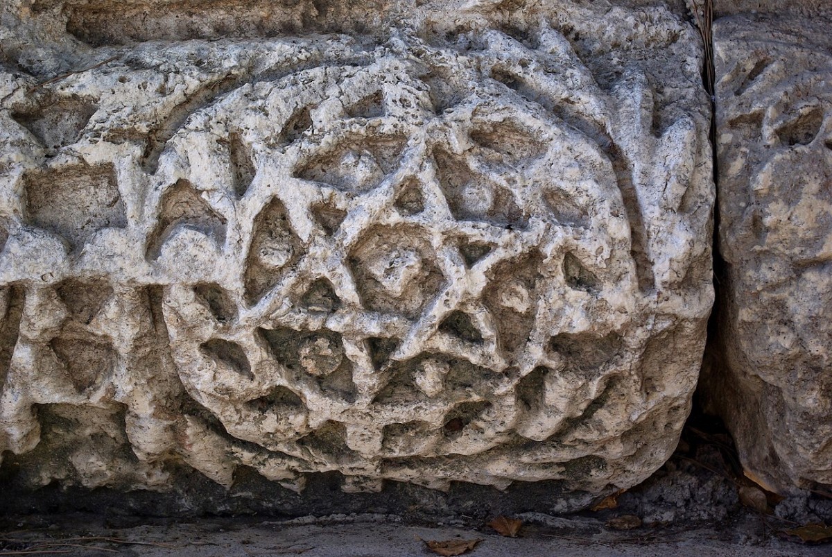 Шестиконечная звезда на камне из синагоги в Капернауме