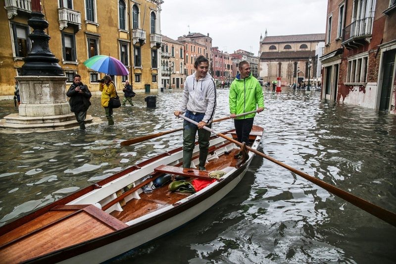 Накануне в Крыму из-за проливных дождей оказалась затоплена Керчь. Главе республики Сергею Аксенову пришлось осматривать центр города на лодке. На полуострове объявлен режим чрезвычайной ситуации.