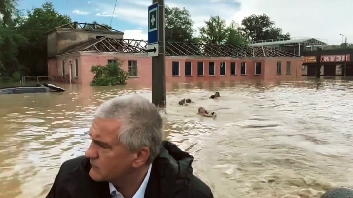 Из-за наводнения в Крыму глава полуострова вынужден был плыть на лодке