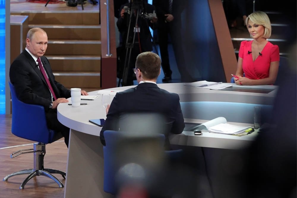 «Телеведущие вместе с Путиным перед Прямой линией готовятся, работают со всем массивом вопросов», — сказал Песков.