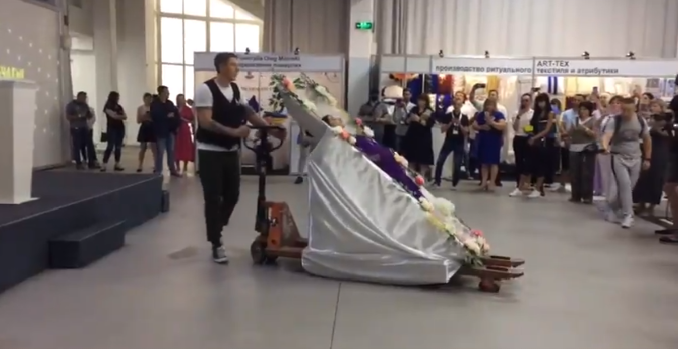 У Києві пройшла виставка сучасної похоронної культури — моделі в імпровізованих трунах демонстрували стильний жіночий одяг для покійників pic.twitter.com/IBFP5Bcxyu