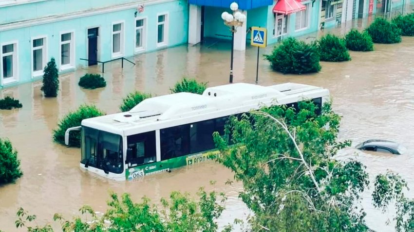 По его словам, через затопленные участки дорог в районе автовокзала осуществляется перевозка людей военной техникой.