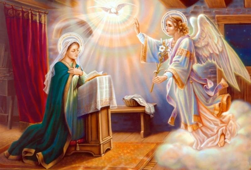 Анна была дома, однако сердцем почувствовала всю скорбь и боль мужа. Она вышла в сад и стала говорить с Господом Богом. В её речи звучали слова отчаяния и мольбы, подарить им ребёнка. Внезапно появился ангел, который поведал женщине о скором рождении дочери. Он также упомянул, что её ребёнок в будущем подарит на свет Сына Божьего. Ангел приказал супругам прийти в Иерусалим к Золотым Воротам и помолиться Всевышнему. Спустя 9 месяцев в семье появился ребёнок, которого они по настоянию посланника Бога назвали Марией. Иоаким в честь рождения дочери принёс особые дары в церковь и получил благословение от священника. Согласно Библии именно родители Девы Марии считаются Богоотцами.
