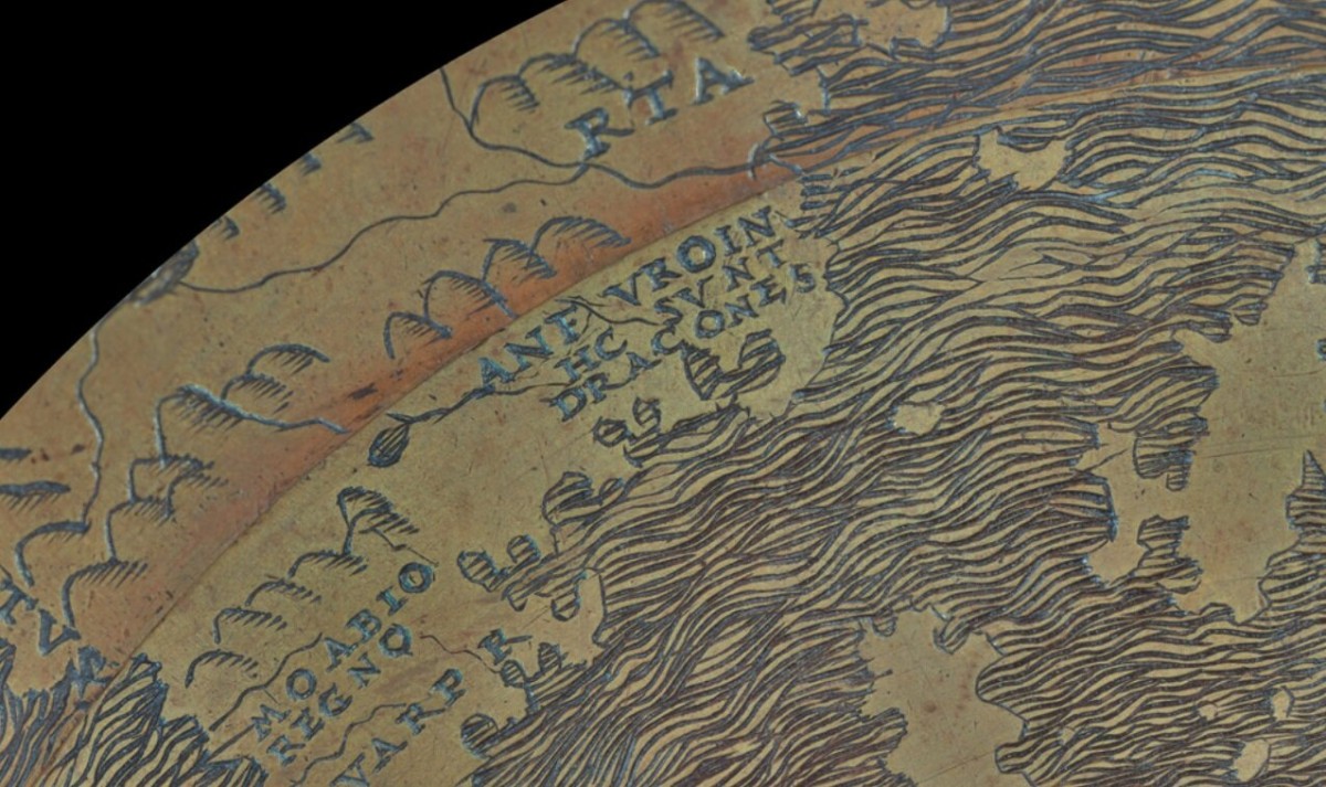 В 2015 году глобус оцифровали и теперь его можно рассматривать онлайн. На глобусе сохранилась известная фраза "Здесь обитают драконы" (Hc svnt dracones) - в южном полушарии на побережье ЮВА, кликабельно на весь экран.