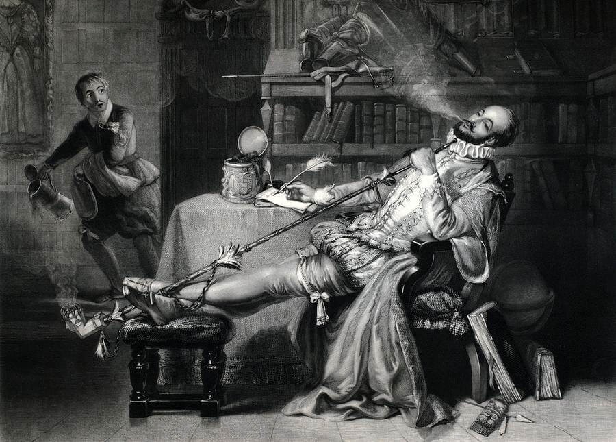 К тому времени англичане уже со смехом вспоминали, как пару поколений назад они реагировали на незнакомое им курение. К примеру, Ричарда Тарлтона, одного из первых курильщиков, «потушили» двое мужчин: они «…никогда такого не видев, изумились; а заметив пар, идущий из носа Тарлтона, закричали: ''Пожар, пожар!'' и выплеснули стакан вина ему в лицо». Похожий случай произошёл с Уолтером Райли, который вернулся из Нового Света в Англию, спокойно закурил, а через пару минут слуга вдруг облил его голову пивом — подумал, что сэр Райли загорелся.