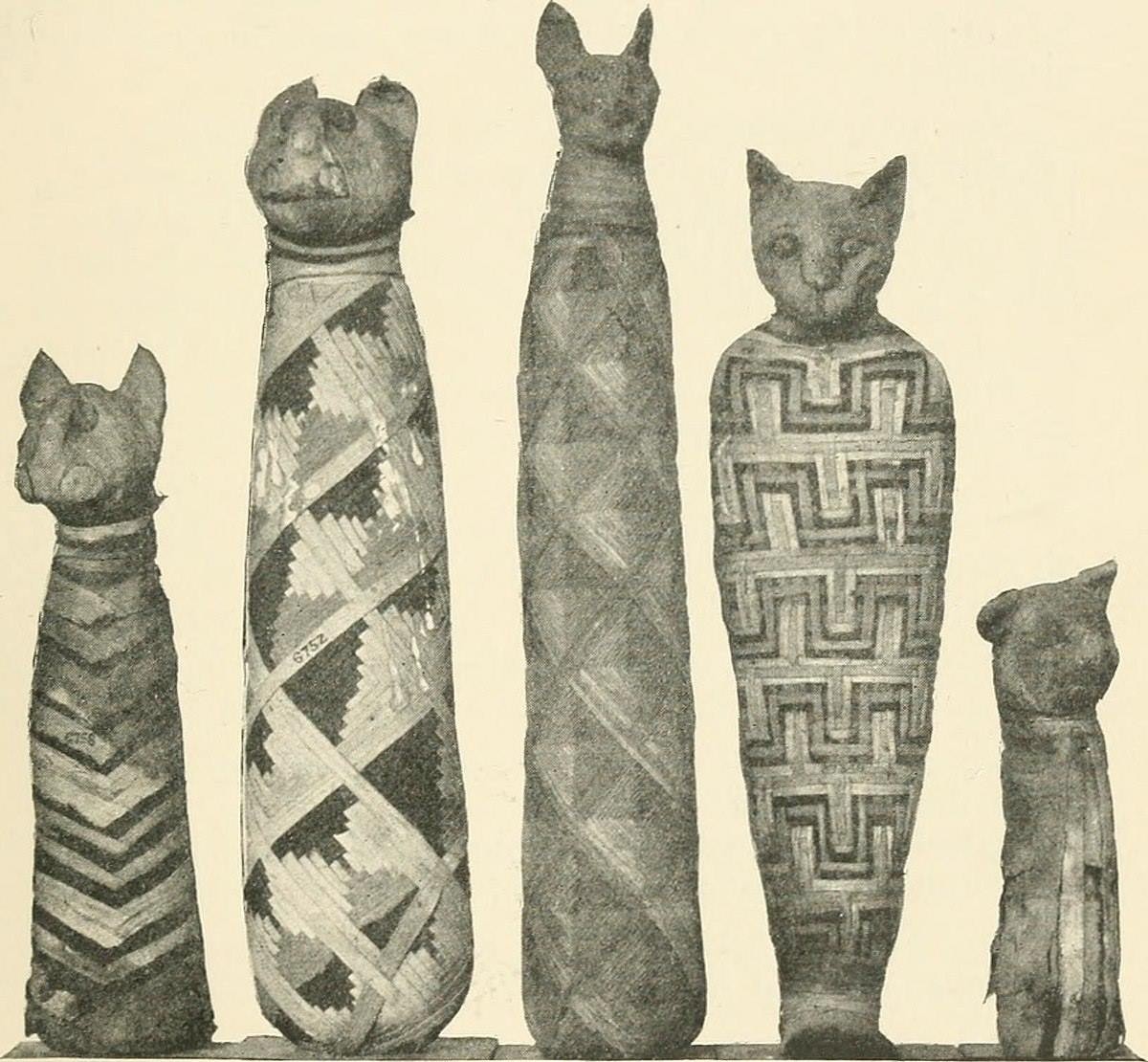 Как правило, после смерти кошек мумифицировали: тело погибшего животного заворачивали льняной тканью, умащивали благовониями, которым могли позавидовать многие люди, и бальзамировали. Нередко в саркофаг кошек клали угощения и игрушки, с которыми они любили играть при жизни.