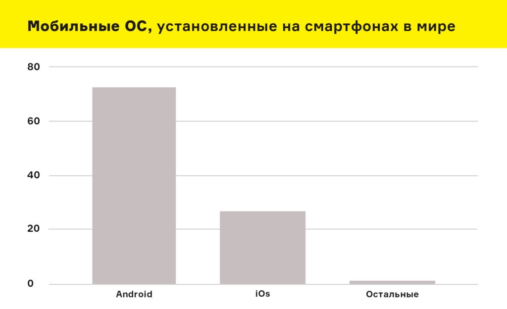 Давайте опустимся на уровень ниже: большинство людей заходят в соцсети с мобильных устройств. Существуют около десятка компаний, чьими смартфонами пользуется три с половиной миллиарда человек. При этом на 99% этих устройств установлена одна из двух операционных систем: или Android (71,83%), или iOS (27,41%). То есть две компании, Google и Apple, контролируют большую часть того, что происходит на «расширителях мозга», как назвал смартфоны Маск, во всем мире. Похожая ситуация и с компьютерами: на 3/4 всех компьютеров планеты установлена ОС Windows от Microsoft, а на каждом шестом — MacOS от Apple.