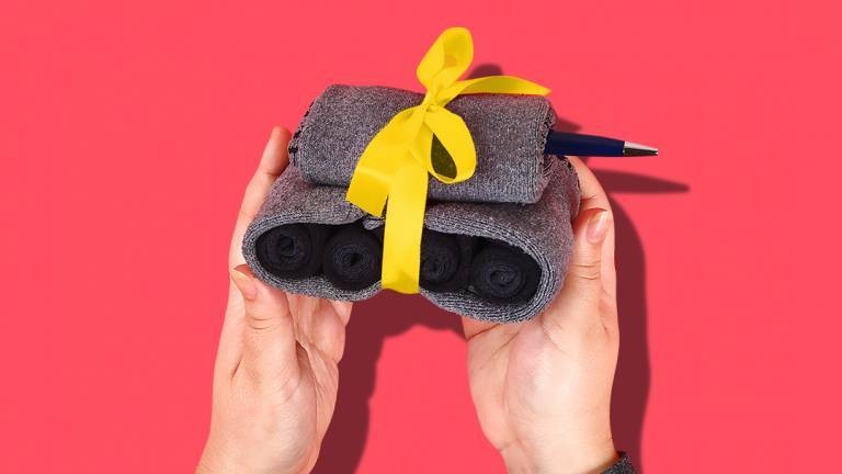 Ни один День защитника Отечества не обходится без носков. Чтобы подарок порадовал мужчины, женщины придумали оригинальную подарочную упаковку – консервирную банку. Представители сильного пола посмеялись и порадовались такому презенту.