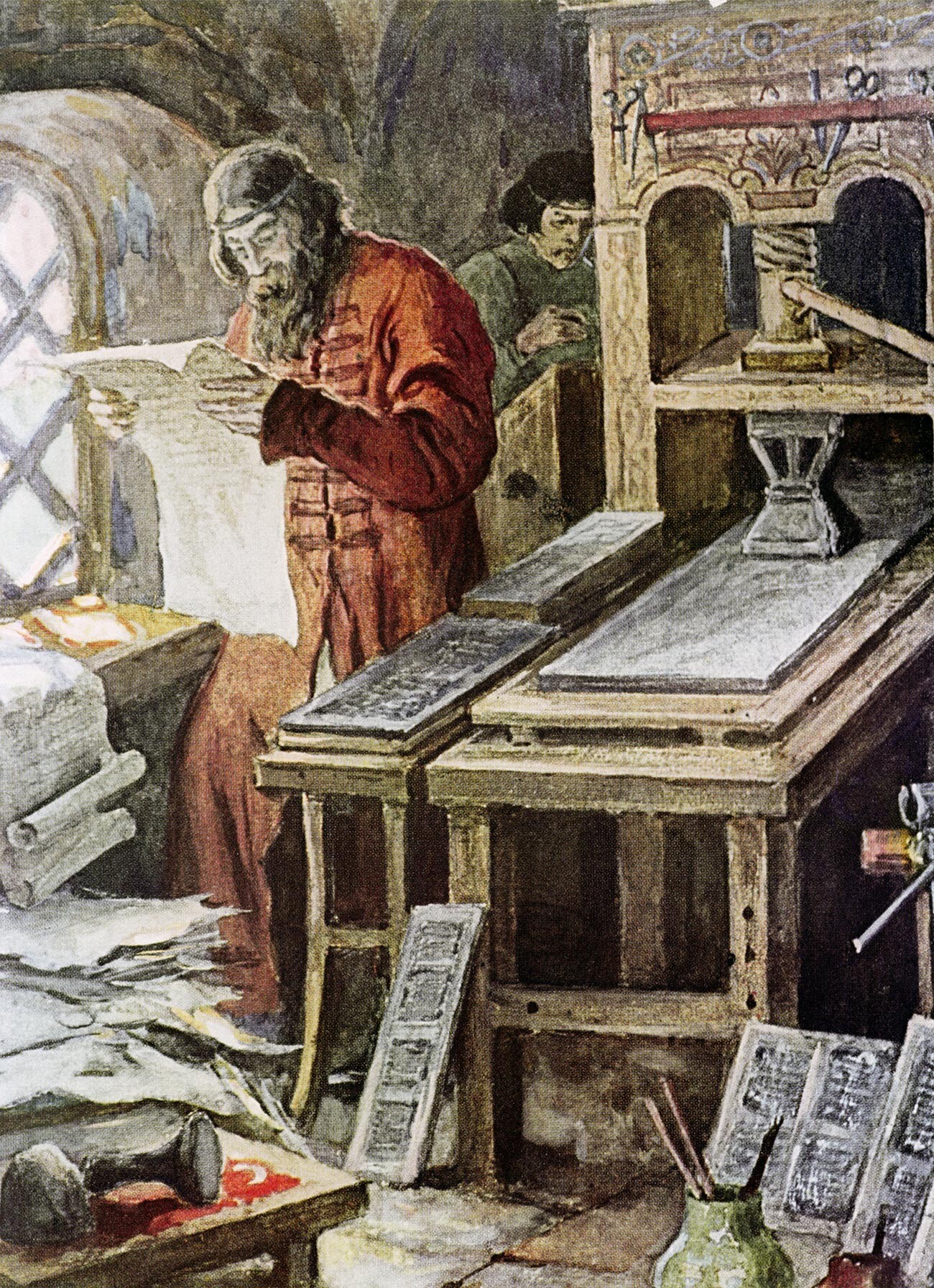 Первопечатник Иван Федоров в мастерской. Репродукция. Государственный Исторический музей, альбом "Москва и москвичи" - Валентин Черединцев/Sputnik