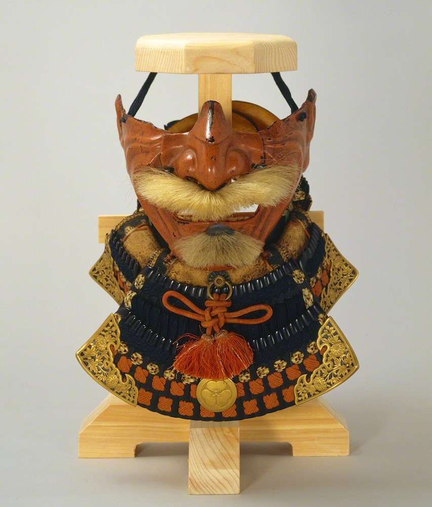 Однако маски надевались не только для защиты, они должны были устрашать врагов и наделять владельцев магической силой, поэтому особой популярностью пользовались личины демона или мифического существа с длинным носом или клювом — тэнгу. В период Эдо маски были частью парадного доспеха и подчеркивали статус владельца.
