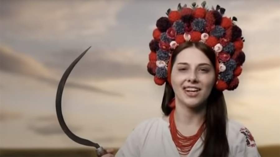 Накануне в интернете появился социальный ролик, в котором девушка в украинском народном костюме стоит в поле с серпом в руках. Около нее на коленях стоит мужчина в военной форме. Героиня ролика, в которой пользователи узнали украинскую актрису Андрианну Курилец, произносит русофобские высказывания. Затем девушка с улыбкой на лице серпом перерезает мужчине горло.