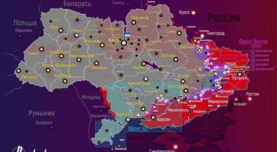 Карта боевых действий на Украине по состоянию на сегодня, 08.05.2022