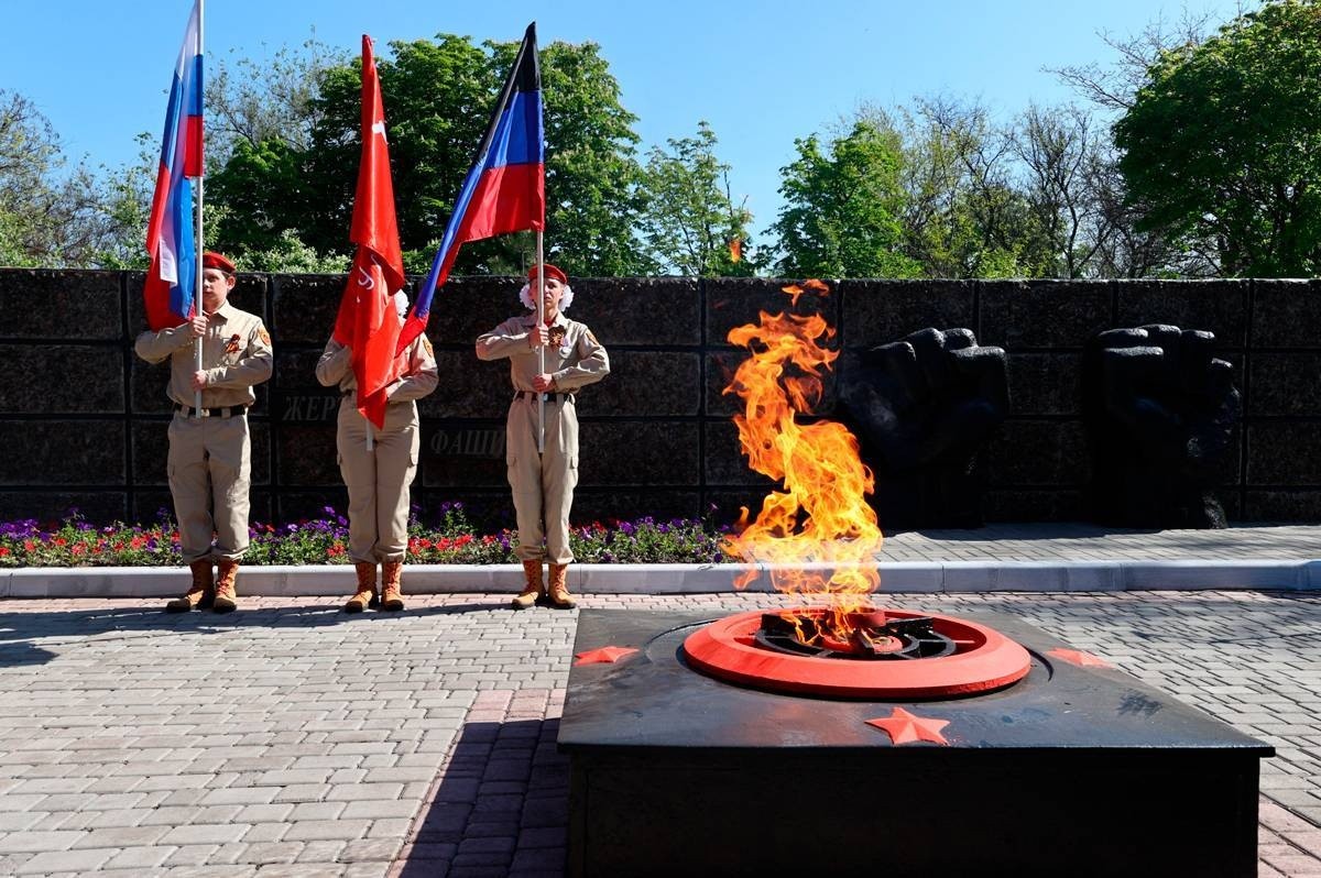 В России, Донбассе и на освобождённых территориях единороссы проводят мероприятия, посвящённые Дню Победы. В Мариуполе, у памятника жертвам фашизма, снова зажёгся Вечный огонь.