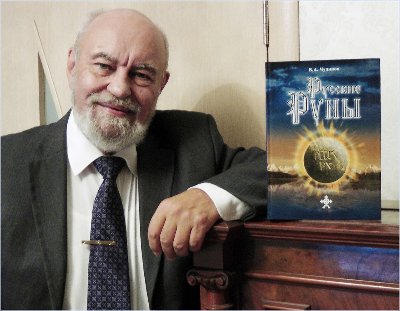 Более того Чудинов на сегодня председатель Комиссии по культуре древней и средневековой Руси Научного совета по мировой культуре Российской академии наук, автор открытия исконной руничной письменности древних русов — РУНИЦЕ.