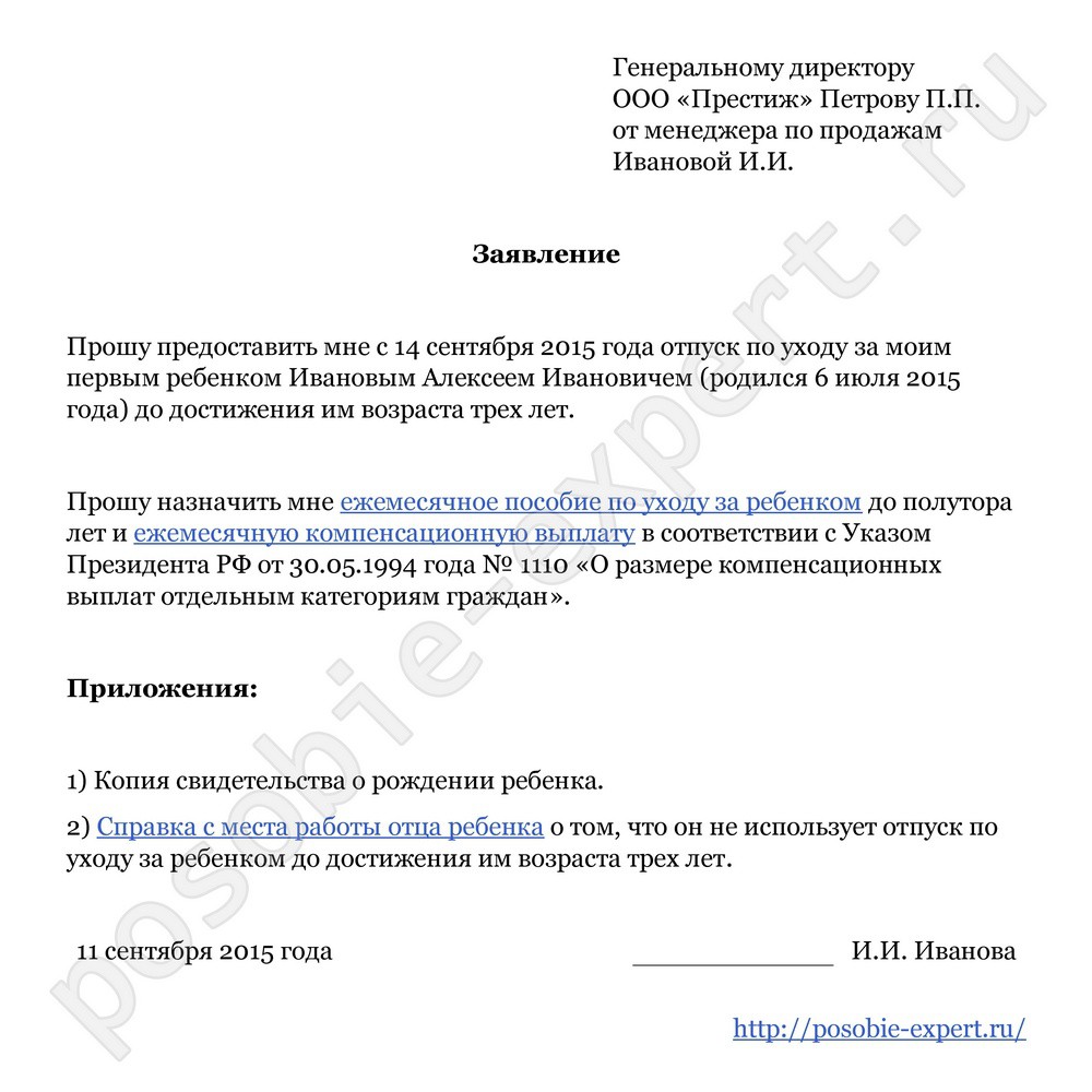 Заявление на выплату компенсации по уходу до 3 лет и необходимые документы