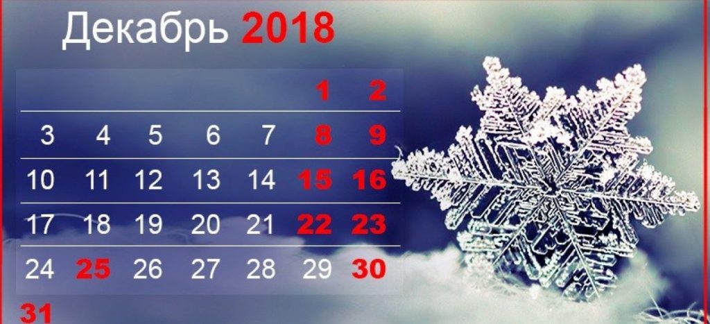 - 31 декабря 2018 г. – понедельник, выходной перенесен с субботы, 29.12.2018 г.